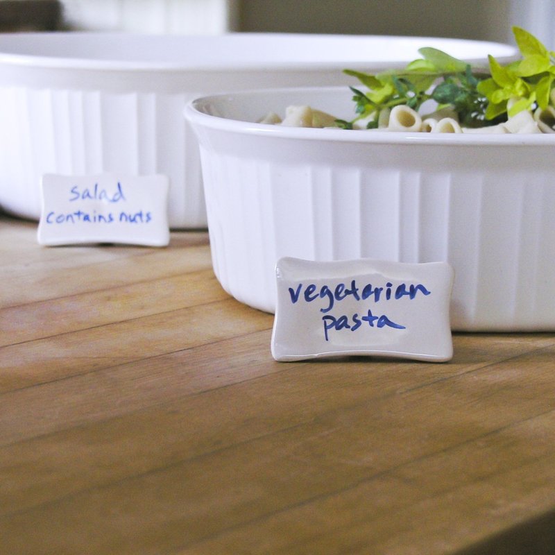 Evelots 6 Reusable Porcelain Place/Name Cards, Easel Backs, White