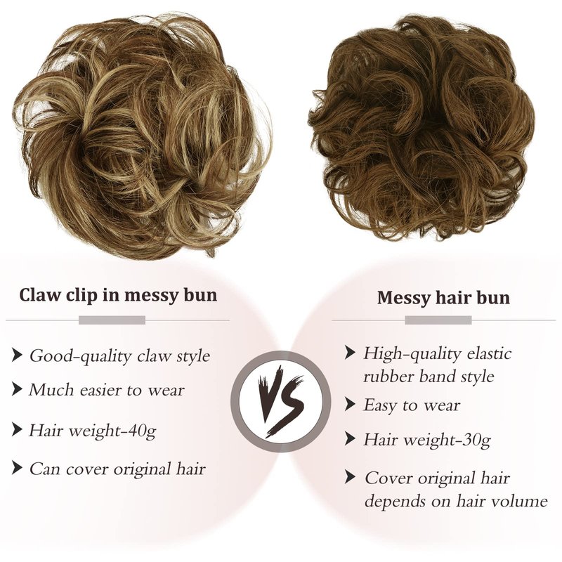 - ♥ Color Issue: The color of a 100% human hair clip claw bun is more natural than a synthetic messy bun hair piece. Each color swatch or photo shown can vary from screen to screen, so there may be a certain color difference between the picture and the real object. If you meet with any problems, you can contact us with any suggestions.