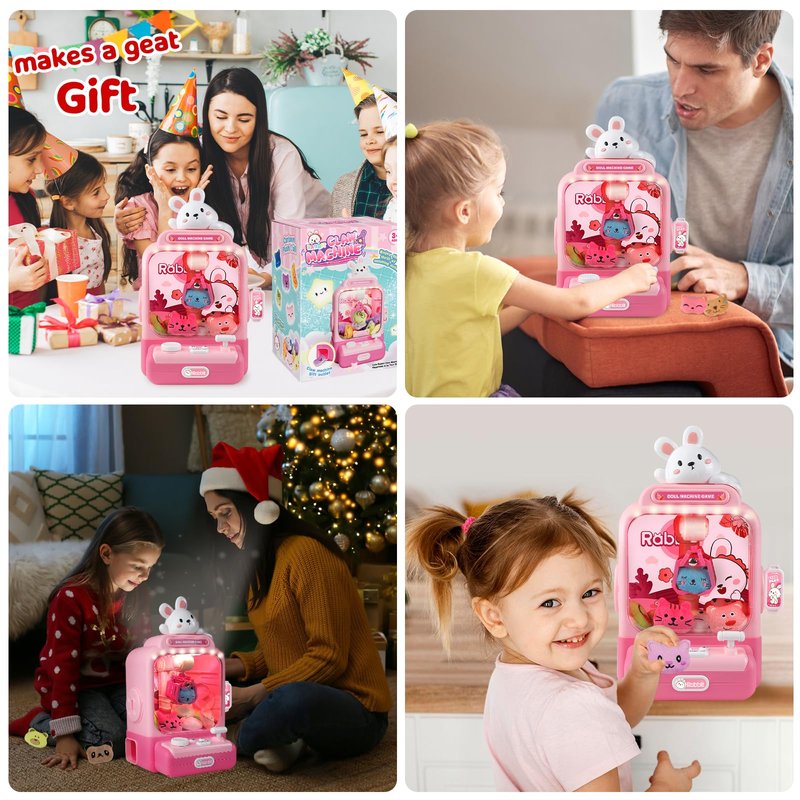 Claw Machine for Kids,Mini Rabbit Vending Machines with LED Lights & Sound & Mini Plush Dolls,Candy Grabber Prize Dispenser Bunny Toy,Electronic Arcade Game Machine for Party Birthday