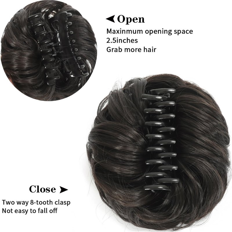 - Material: This messy claw bun scrunchie made by premium synthetic fiber, its looks, moves and feels like real hair soft and silky .This hair bun extension is very soft and comfortable touch feeling, blending well with your own hair and make you gorgeous in a second.