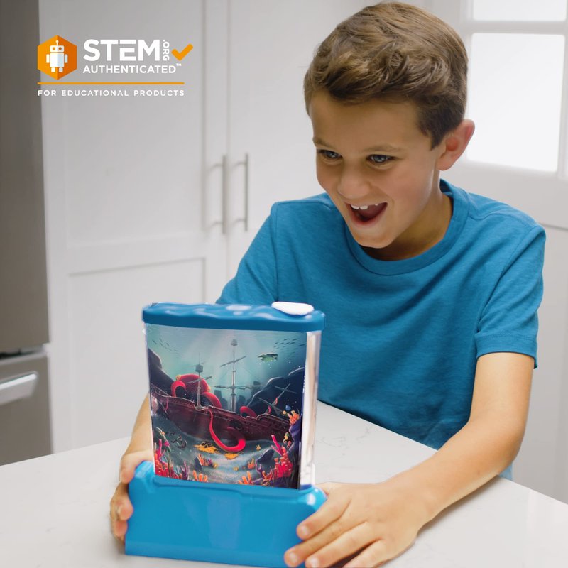 - INCLUDES: 21 gold, silver and bronze-colored rings, a crystal-clear water tank, and 4 interchangeable plastic panels featuring fun deep-sea scenes! Also includes color instructions. No batteries. No Wi-Fi. No Problem!