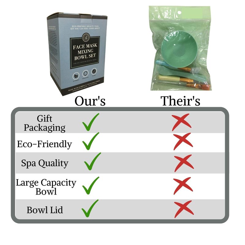 Spa-Quality vs. Cheap Silicone: Our face mask mixing bowl set is awesome, if we don’t say so ourselves. Do other mixing bowl sets have a stylish bamboo lid? No, they do not! Use the bamboo lid to rest the dirty spoon to keep the counter clean and tidy. Other cheap silicone mixing bowls are bad for the environment and fall over when you leave the spoon in, not ours! Our face mask mixing bowl set is spa-quality, stylish, biodegradable, and perfect for all your DIY skincare needs.