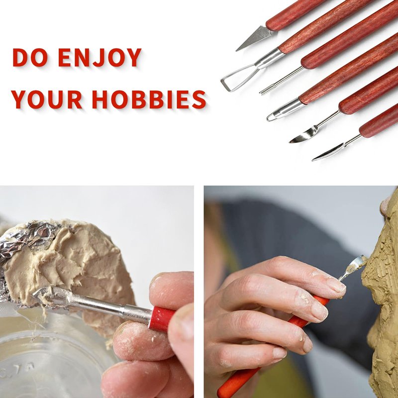 Clay Sculpting Tools, 6 PCS Double-Ended Stainless Steel Polymer Clay Tools, Wooden Handle Pottery Tools for Embossing, Carving Tools and Supplies