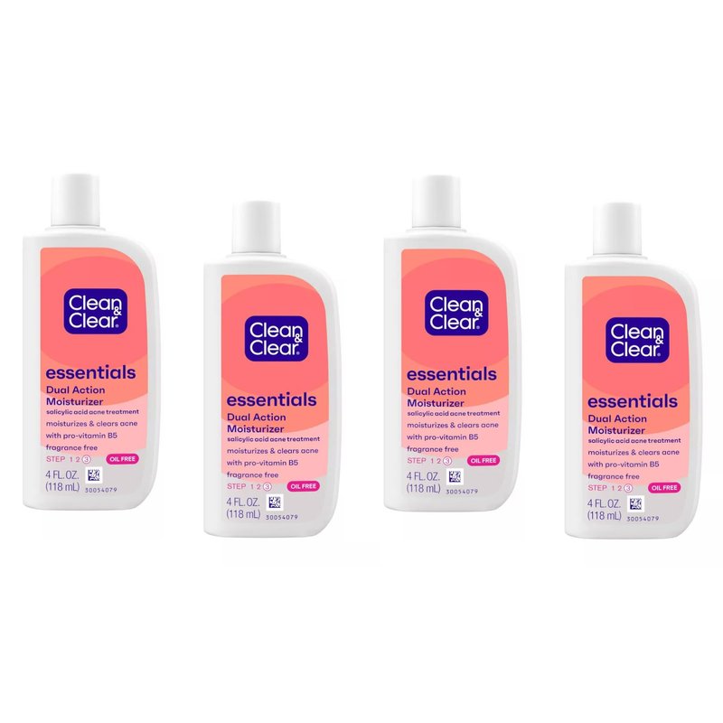 Clean & Clear Essentials Dual Action Facial Moisturizer with Salicylic Acid Acne Medication to Treat Acne and Prevent Pimples, Oil Free Face Moisturizer Cream for Acne-Prone Skin, 4 oz (Pack of 4)