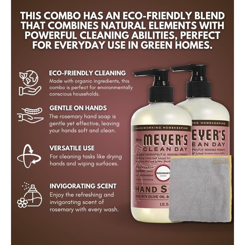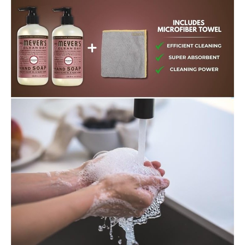 - PERFECT BUNDLE SET - This set includes 2x Clean Day Organic Rosemary Scent Liquid Hand Soap bundle with 1x Microfiber Cloth, ensuring a gentle clean and a polished finish for your hands and sink area. (Packaging May Vary)