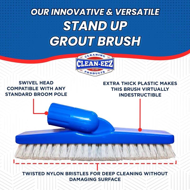 - ✔️ Innovative Pivoting Brush Head - How It Works Our stand-up brush features a pivoting brush head, letting you clean various tile areas while standing in one place. Crafted from heavy-duty plastic, both brushes ensure durability. The stand-up grout brush, measuring 9 inches long, makes your job easier and faster.