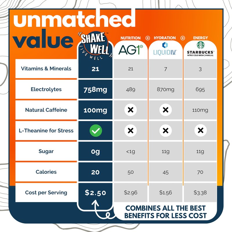 - FULL SPECTRUM MULTIVITAMIN - First and only multivitamin drink mix to combine the nutrition content of a full-spectrum multivitamin with rapid hydration power of electrolytes and a smooth energy blend. Made with the most bioavailable forms of every nutrient for maximum absorption; we spared no expense.