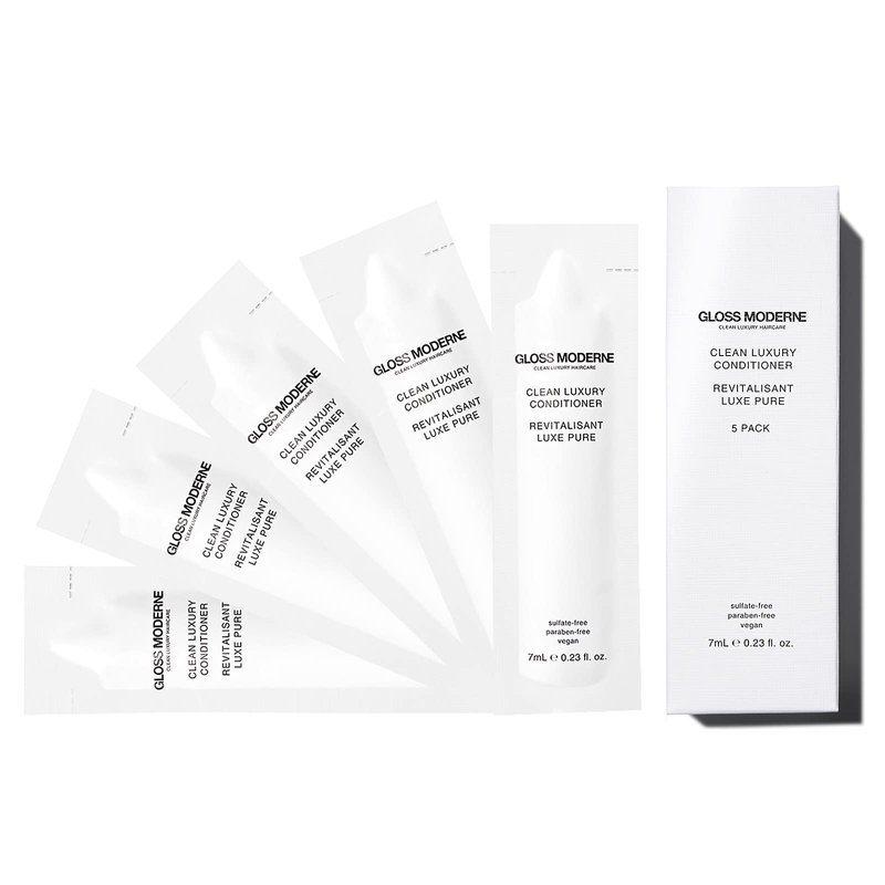 Clean Luxury Travel Conditioner by GLOSS MODERNE - 5 Pack - Hair Treatment for Damaged and Dry Hair with Notes of Mediterranean Almond and Coconut Accented with Cognac - For Soft and Shiny Hair
