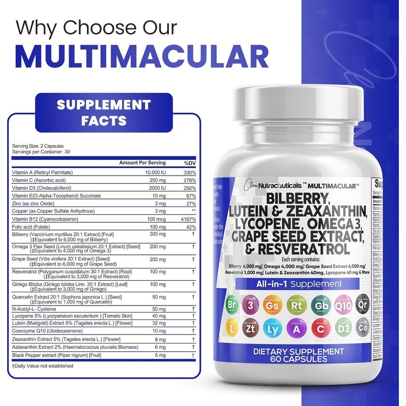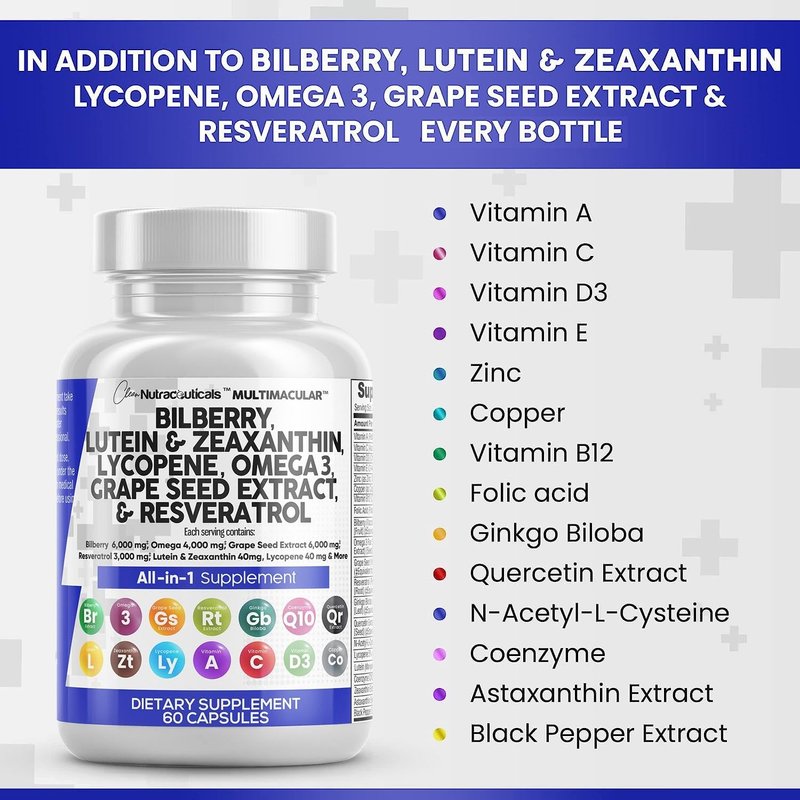 - Premium Eye Health Supplements for Adults - Harness the power of Clean Nutraceuticals Eye Vitamins. Our innovative formula boasts lutein, zeaxanthin, bilberry extract, and resveratrol, key ingredients acknowledged for promoting eye health. This high-performing antioxidants supplement helps neutralize free radicals and support optimal eye health, making our eye supplement an excellent choice for adults seeking to help protect their eye health.