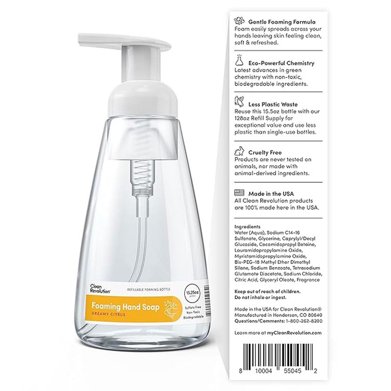 Clean Revolution Foaming Hand Soap, Gentle, Moisturizing, Ready To Use Formula, Real Essential Oils, Gluten Free, Dreamy Citrus, 15.25 Fl Oz