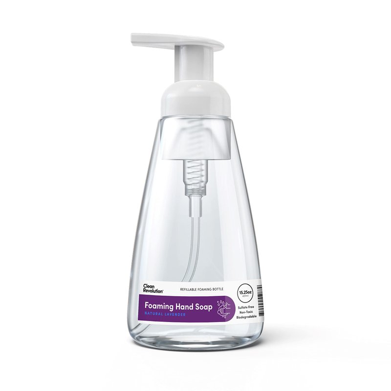 Clean Revolution Foaming Hand Soap, Gentle, Moisturizing, Ready To Use Formula, Real Essential Oils, Gluten Free, Natural Lavender, 15.25 Fl Oz