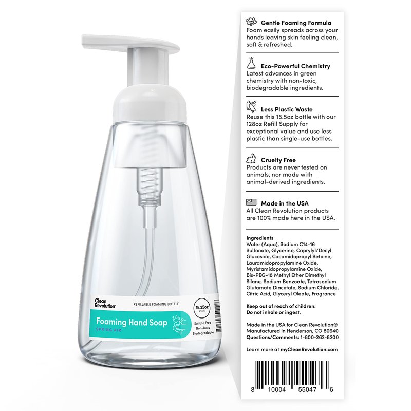 Clean Revolution Foaming Hand Soap, Gentle, Moisturizing, Ready To Use Formula, Real Essential Oils, Gluten Free, Spring Air, 15.25 Fl Oz