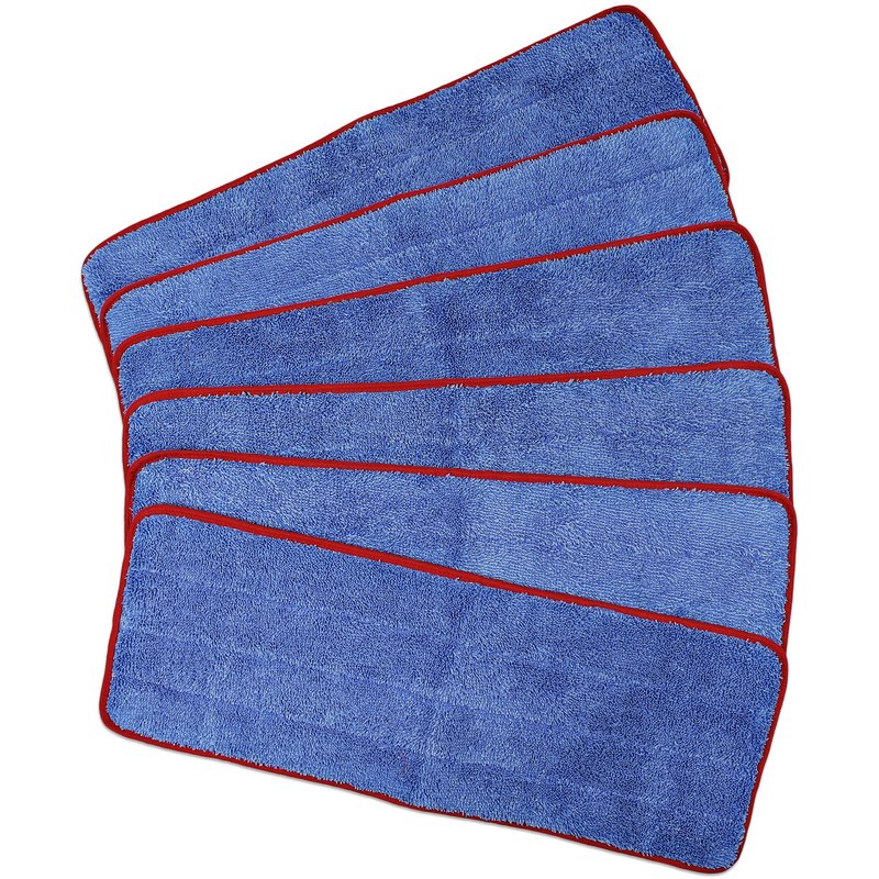 This is a pack of 6 CleanAide All Purpose Mega Microfiber Mop Pads. 21" x 8", 60% larger than our traditional mop pads allowing them to efficiently clean much larger surface areas. They remove dust, dirt and micro-particles through static-electricity which collect and trap deep within the microfibers. Trap dirt, pet fur and debris. Earth friendly and cost effective because they reduce the use of harmful chemicals and are more durable than cotton or paper towels. The pads are machine washable hundreds of times over and will save you money and help our environment. These pads fit 18" mop plates but are best used in conjunction with a CleanAide 18 inch aluminum mop plate, sold separately. Available in three colors - red, blue, and green.