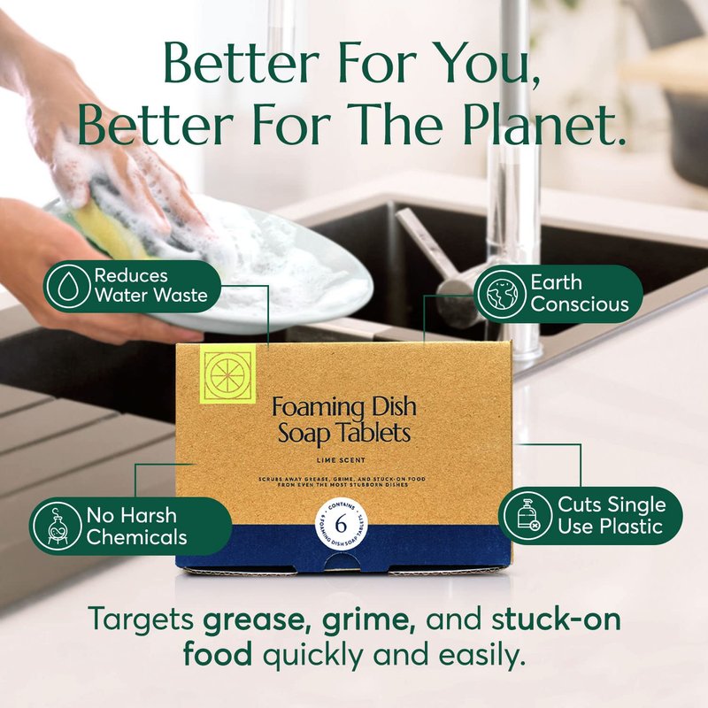 - Our Foaming Dish Soap Tablets are formulated for hand washing even the most delicate dish ware, pots, pans, cutlery, and more.