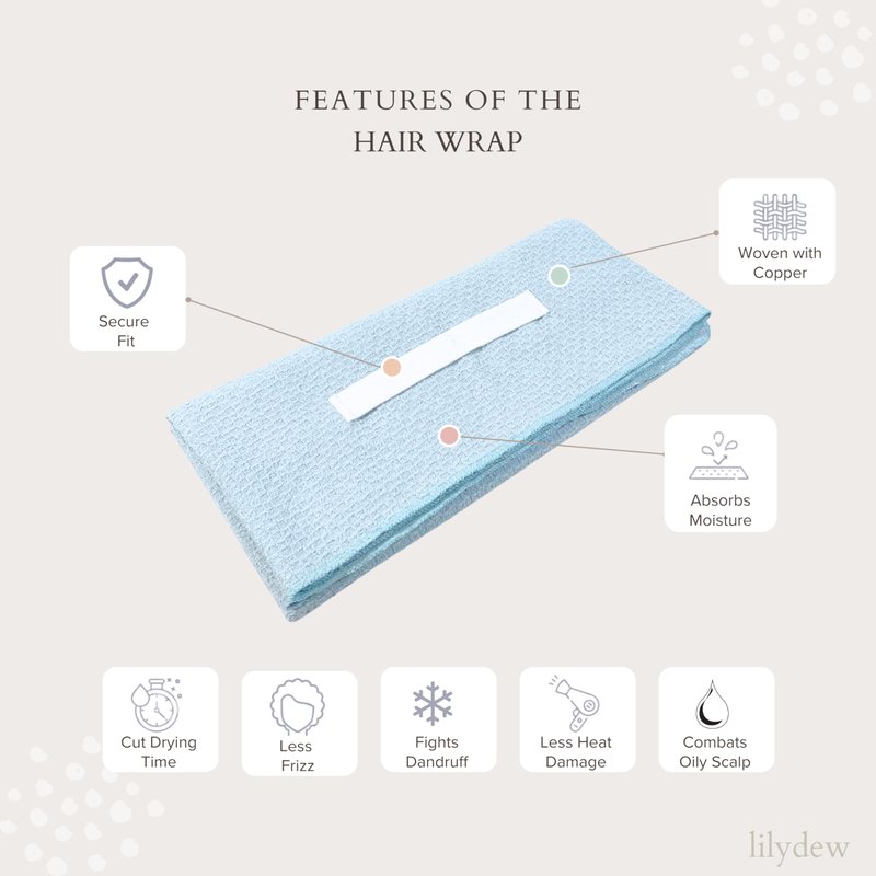 Cleans Scalp Hair Towel, Reduces Dandruff & Oily Scalp, Woven with Copper, Lilydew Hair Wrap Aire, 1pc, Light & Absorbent Microfiber, Anti-Frizz
