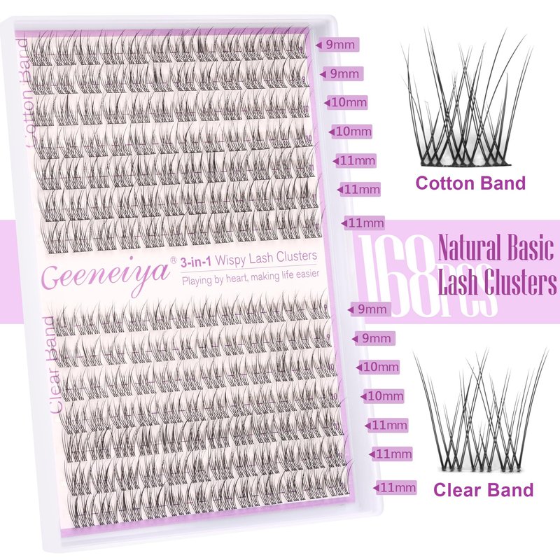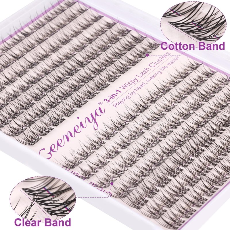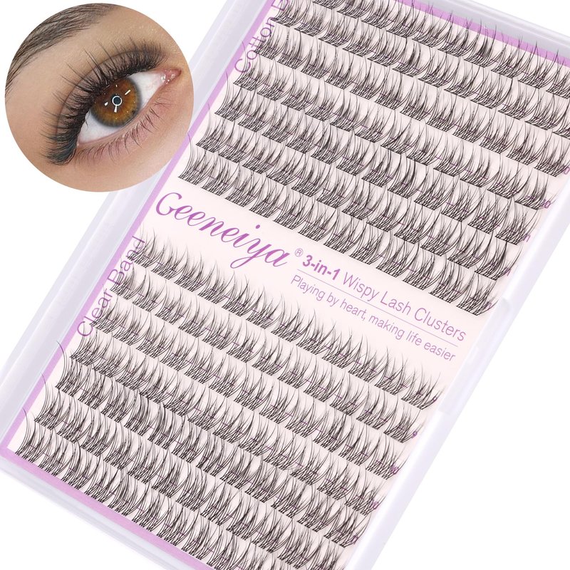 - Beginner & Proficients Friendly: High-quality 3-in-1 NEW cluster lashes kit are so cute! Just 5-10 minutes to create a natural wispy eye makeup look. Whether you're a lash enthusiast or a beginner, applying Geeneiya cluster lashes is so easy