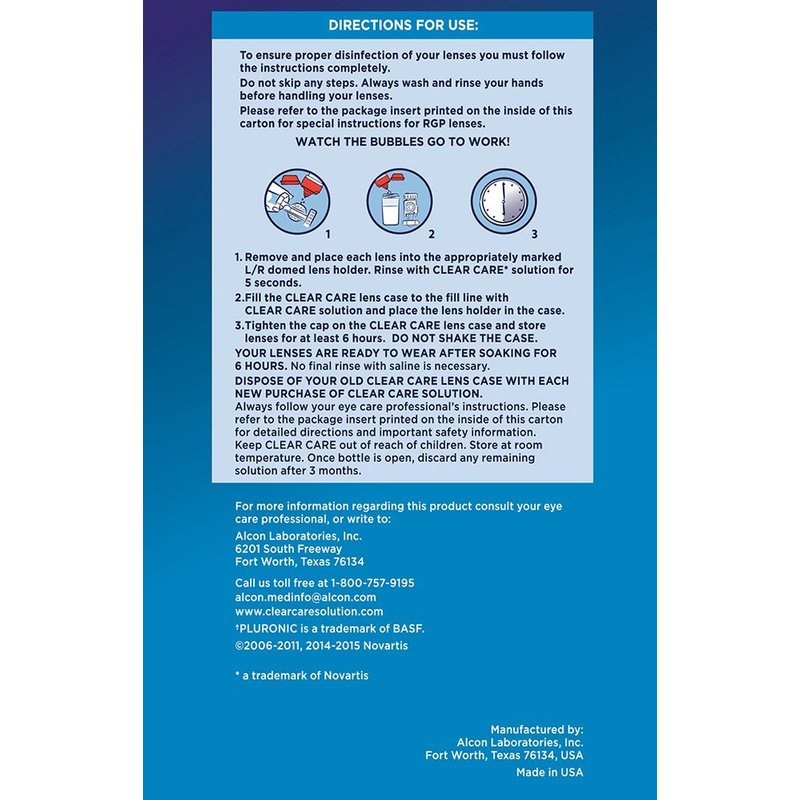 - Never put CLEAR CARESolution directly in or around your eyes Follow instructions completely and do not skip any steps
