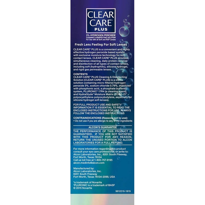- Not only does CLEAR CARE Solution clean your contact lenses with the bubbling power of hydrogen peroxide, it also surrounds your lenses with long-lasting moisture