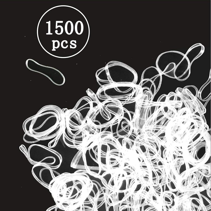 BEBEEPOO 1500 Pieces Clear Rubber Elastic Hair Bands with free box Attention! Please don’t overstretch the bands, although it’s strong enough for one day’s use, but they may cannot stand a power like a cotton band does; the clear rubber bands are disposable, please don't reuse them once it loose elastics. and you can choose appropriate quantity one time as per your hair thick and tighten requirmentBox container: help you to sort out clear hair bands, and you can use it as a small storage box after the elastic hair bands use out Note: please avoid using the clear hair band by your baby child alone, please don't swallow it. Specifications Material: TPU Color: clear Size: approx. 2 mm (W) x 20 mm (L) Package include 1500 x clear elastic hair bands1* box