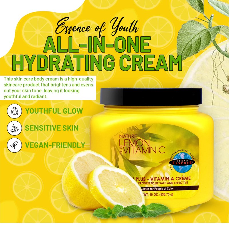 Clear Essence Lemon Plus Vitamin C and A Skin Brightening Creme - Dark Spot Remover for Face - Skin Care Body Cream - Skin Moisturizer - Glow Cream - Best Face Cream for Aging Skin 19 Oz.