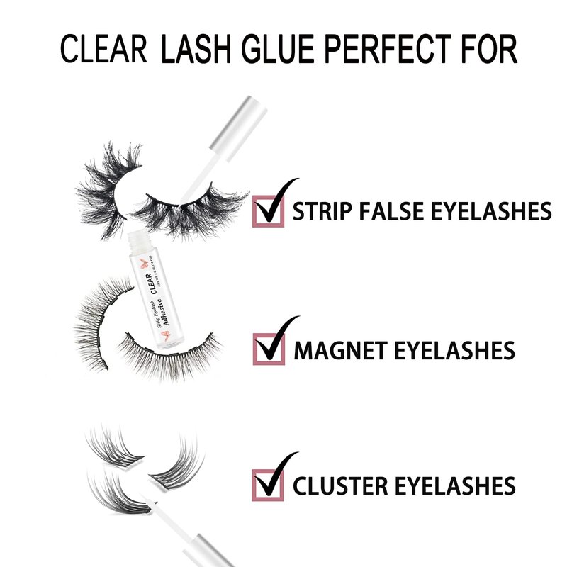 - STICKY AND WATERPROOF: Long-lasting, you don't feel paranoid about your lashes fall off when it rains anymore. This Clear eyelash glue dries fast, strong hold for 24/7,Precise brush tip allow fake eyelashes glue saving, for the novice very friendly.