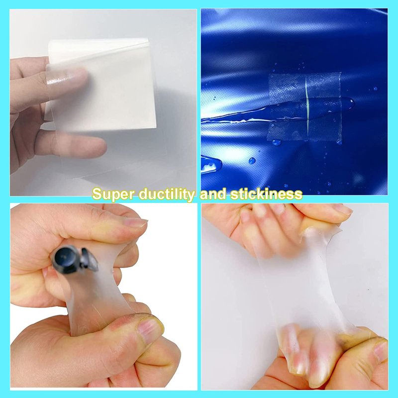 - 【Strong Sticky TPU Repair Tape】: Our clear inflatable repair tapes are made of high-quality TPU material, non-toxic and tasteless. Easy to stick without glue needs. It good in long lasting used, doesn’t like vinyl tape easily to peel off. It would be magic patch for the hole, tear of inflatable products.