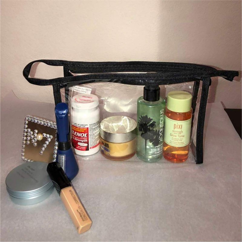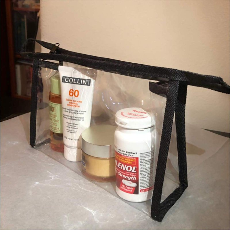 The cear makeup bag is a ideal organizer for carrying cosmetics, medicine, skin - care products, shampoo, lotion, shaver and more