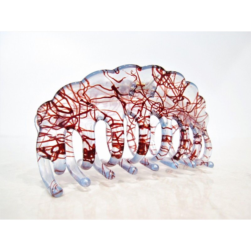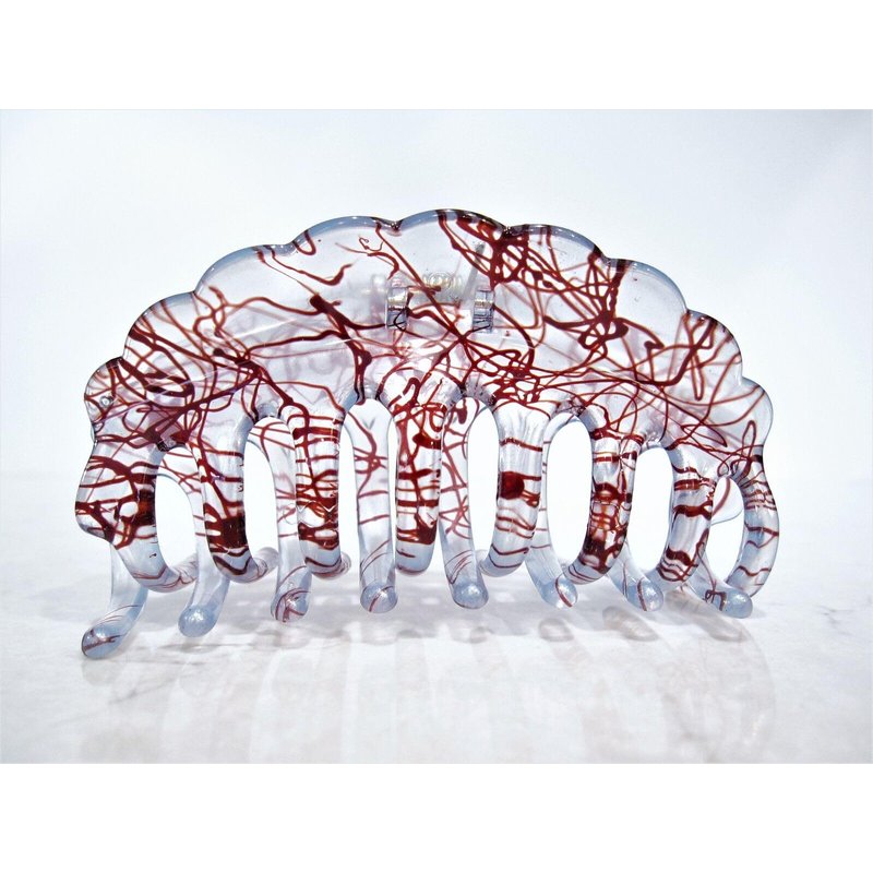 Clear transparent blue and red painted hair claw clip (Primary color: Blue)