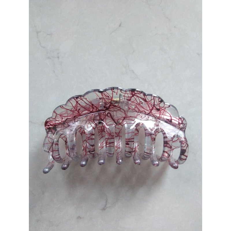 This blue and red clear hair claw is simply pretty and has a strong grip. Clip is 4 inches long.