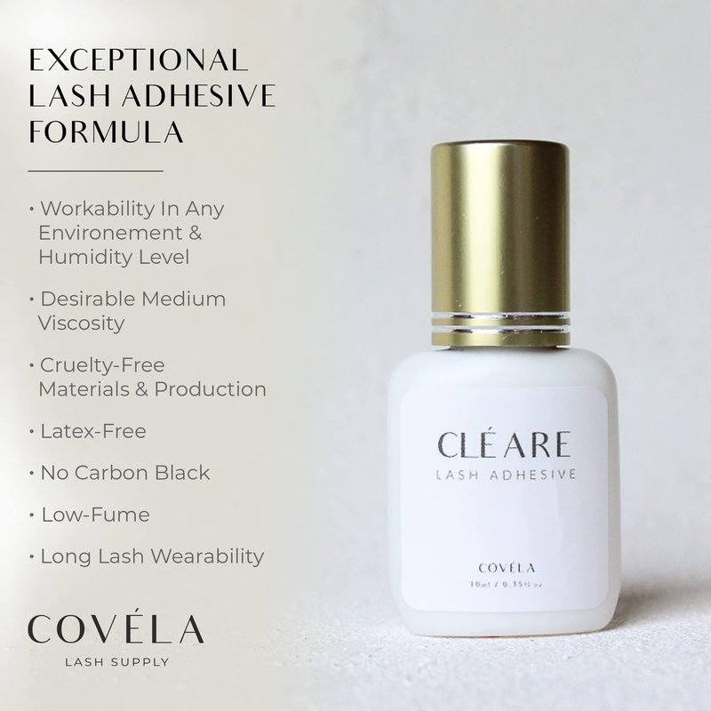 - Adaptable + Dependable Lash Adhesive: The glue that holds it all together—Covéla’s Cléare Lash Adhesive provides the longest possible rate of retention. Long-lasting lash extensions will keep your clients coming back for your exceptional results and your use of top-quality products. Trust Cléare to be incredibly workable in any condition, as it performs in the full range of humidity levels, in every season, for optimal lash retention and your user experience.
