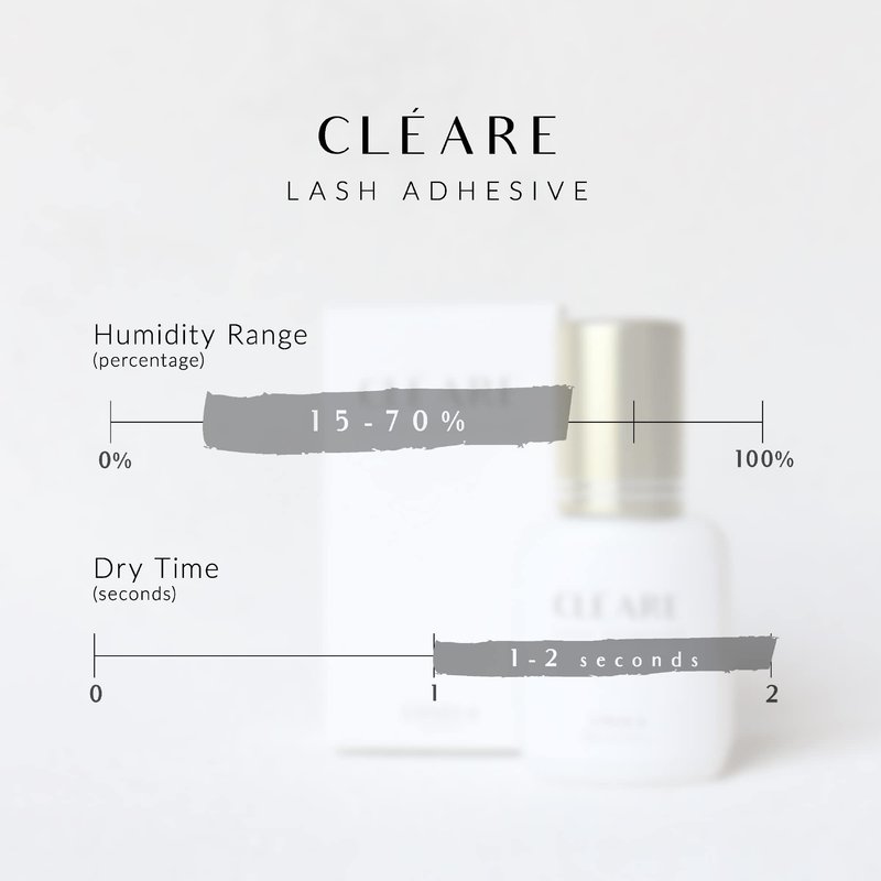 - Results in Any Environment For Every Artist: Lash artists want a professional eyelash adhesive they can use effortlessly, no matter the conditions in their space. Environmental changes won’t affect our blend, as it adapts & performs in the widest range of acceptable humidity levels, from 15% to 70%. If your space fluctuates throughout the day or you want a year-round go-to adhesive, Cléare is ready to hold strong & deliver truly impressive results for loyal clients.