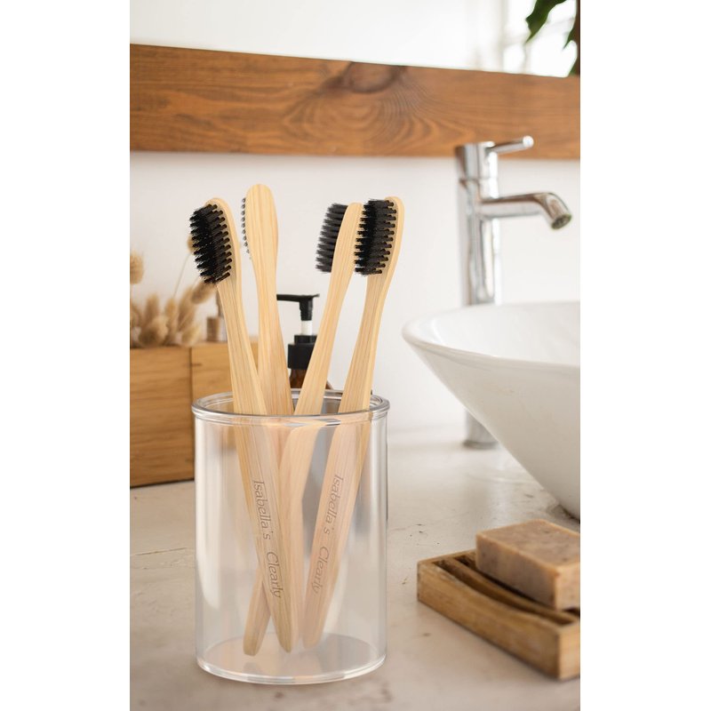 Reduce your plastic impact with our natural bamboo toothbrush. Isabella's Clearly BAMBOO features a bamboo handle and extra soft vegan nylon bristles that are infused with activated charcoal for cleaner whiter teeth, gentle plaque removal and healthy gums. Our ergonomic design is just the right size for adults, kids and teens, so they're comfortable for every family member and are also braces friendly as they can reach hard to reach places in the mouth for ultimate heavy plaque removal. The ultra soft bristles gently and effectively clean and whiten your teeth for natural tooth whitening. Try it with our GLOW activated charcoal powder for even faster teeth whitening or with our remineralizing toothpaste powders for healthy teeth and gums.