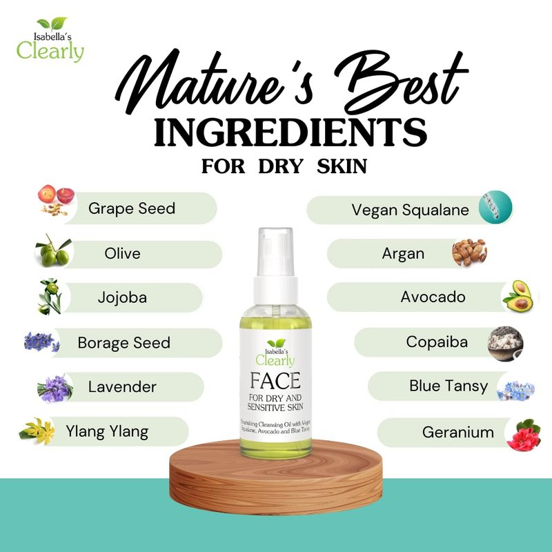 Clearly FACE is a premium facial oil cleanser and makeup remover, designed specifically for those with dry and sensitive skin. Infused with nourishing oils such as vegan squalane, borage, argan, avocado and blue tansy, our gentle and hydrating formula provides a deep cleanse without clogging pores. Packed with natural antioxidants, vitamins, and fatty acids, our cleansing oil nourishes your skin, leaving it soft, supple, and radiant. Our luxurious oil-based cleanser effortlessly dissolves makeup, dirt, and oil, while soothing your skin and enhancing its natural radiance.