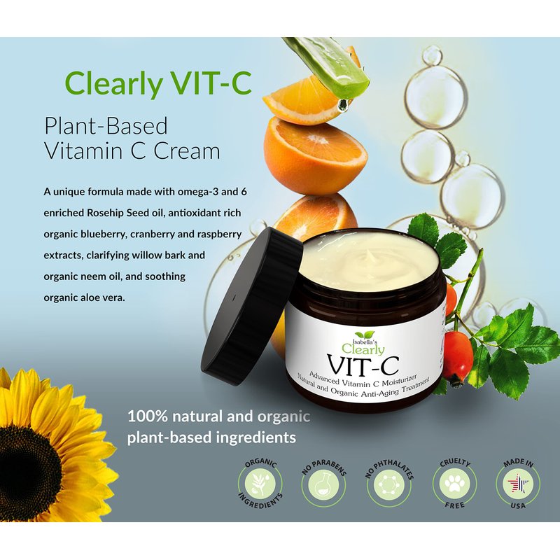 Clearly VIT-C, Vitamin C Cream for Face, Anti Aging Moisturizer with Vitamin E, Organic Berry Extracts and Willow Bark, Hydrating & Skin Brightening for Dark Spots, Fine Lines and Wrinkles (2 oz)