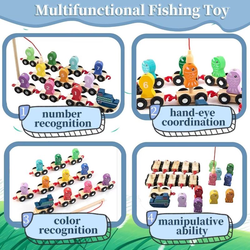 - WOODEN MAGNETIC NUMBER FISHING TRAIN TOY This train toy combines number fishing game with number train toy together. Toddlers or kids not only can play wooden magnetic number fishing game, but also can play wooden number train game. Boys and girls have double fun with this wooden magnetic number fishing train toy.