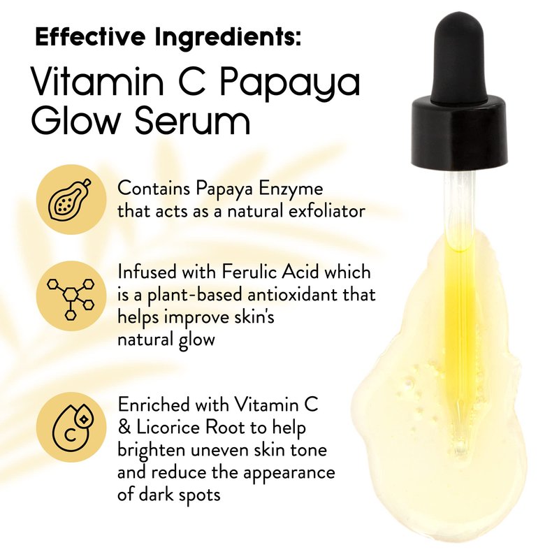- Vitamin C Facial Serum - The Cleen beauty Vitamin C Papaya Glow Serum is highly concentrated for effectiveness, yet still lightweight enough for everyday use. The water-like serum is formulated with Vitamin C, known to brighten and reduce the appearance of dark spots and turmeric for a recharged glow.