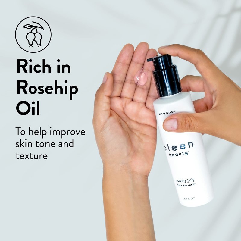 - Gentle Cleanser - The innovative and invigorating Cleen Beauty Rosehip Jelly Face Cleanser is formulated with powerful ingredients that gently remove makeup, dirt, oil, and impurities from the skin. It is rich in Rosehip Oil to improve skin tone and texture as it gently cleanses.
