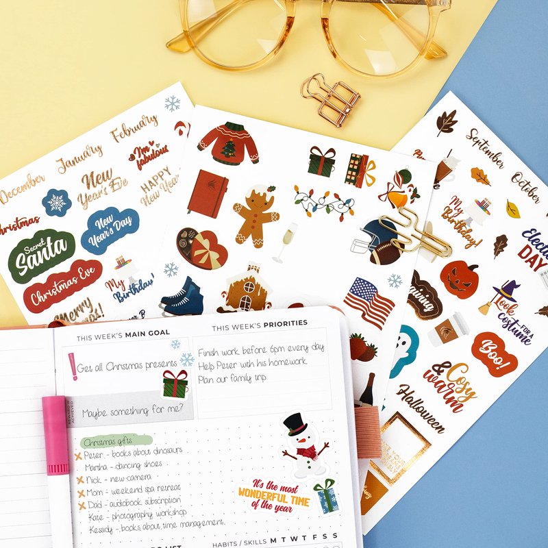- UNLEASH YOUR CREATIVITY & MAKE PLANNING FUN: Use seasonal planner stickers to make planning more fun, creative, and exciting! Escape the boredom and add holiday cheer to your agenda. Mark holidays and birthdays, create unique seasonal layouts, highlight important tasks and appointments, and use various beautiful stickers with motivational quotes to boost your productivity!