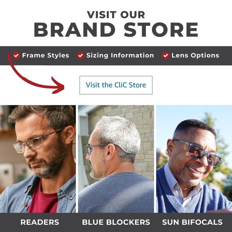 - ADJUSTABLE & FORM-FITTING. The adjustable temple feature found on all CliC frames allow for easy sizing in the moment. Simply pull to adjust the length of your glasses for a perfect fit every time you put them on.