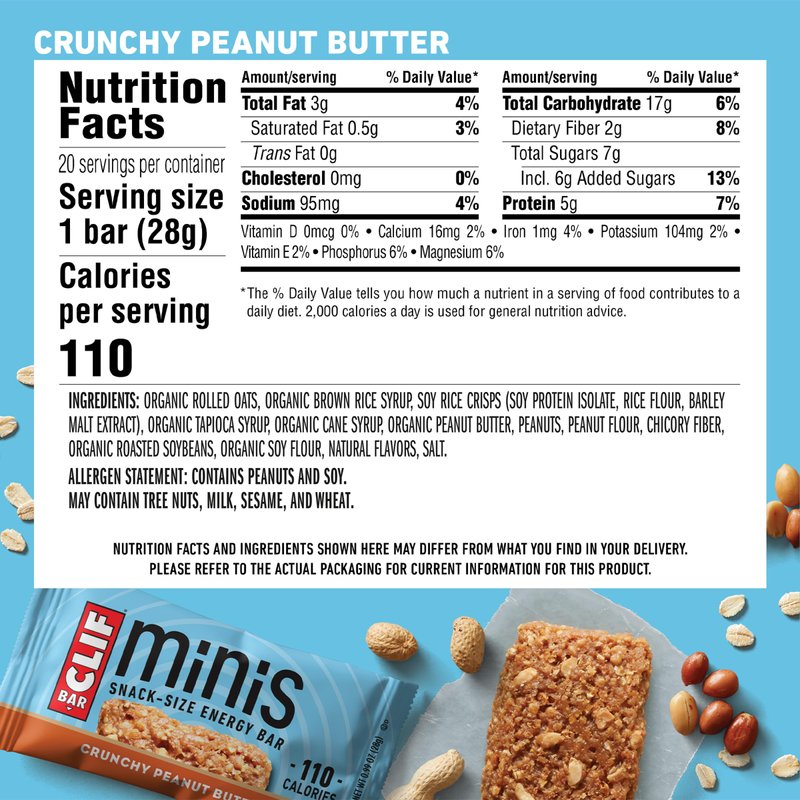 CLIF BAR Minis - Crunchy Peanut Butter - Made with Organic Oats - 5g Protein - Non-GMO - Plant Based - Snack-Size Energy Bars - 0.99 oz. (20 Pack)