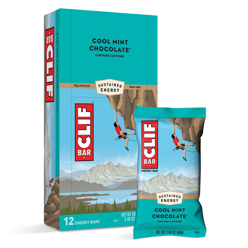 CLIF BARS - Energy Bars - Cool Mint Chocolate - With Caffeine - Made with Organic Oats - Plant Based Food - Vegetarian - Kosher (2.4 Ounce Protein Bars, 12 Count) Packaging May Vary