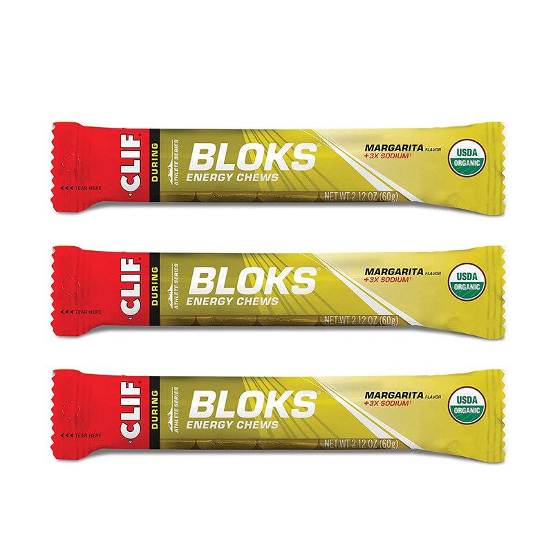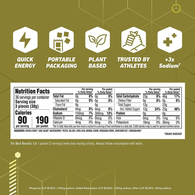 CLIF BLOKS - Energy Chews - Margarita with Salt 3X Sodium for added Electrolytes- Non-GMO - Plant Based Food - Fast Fuel for Cycling and Running-Workout Snack (2.1 Ounce Packet, 3 Count)