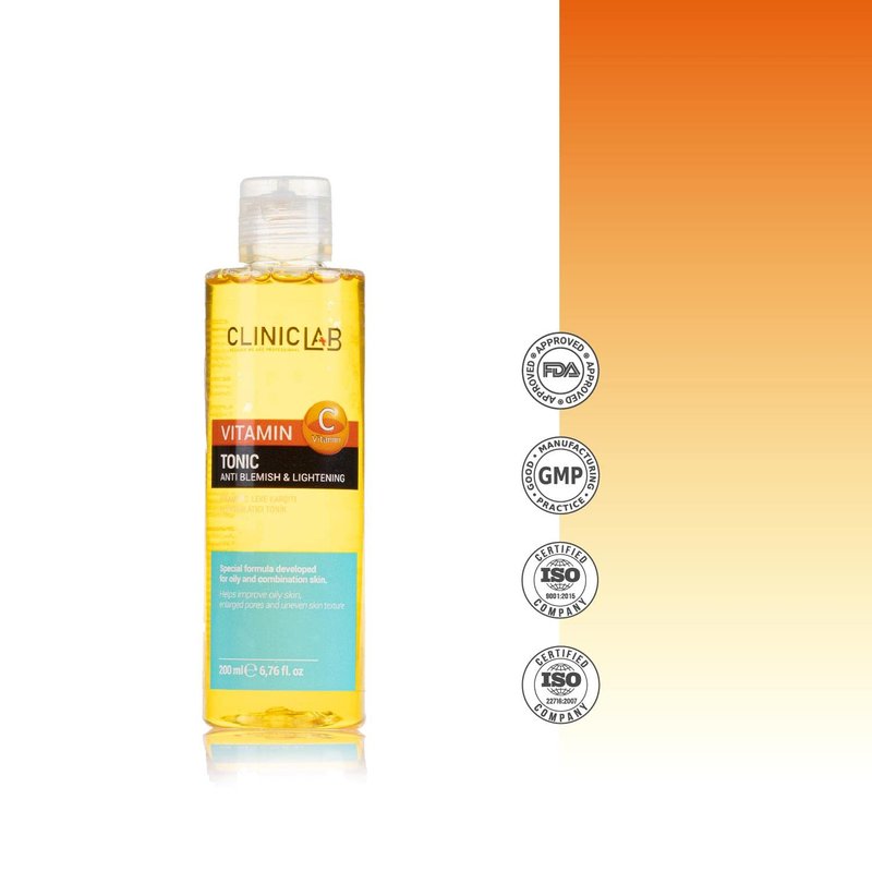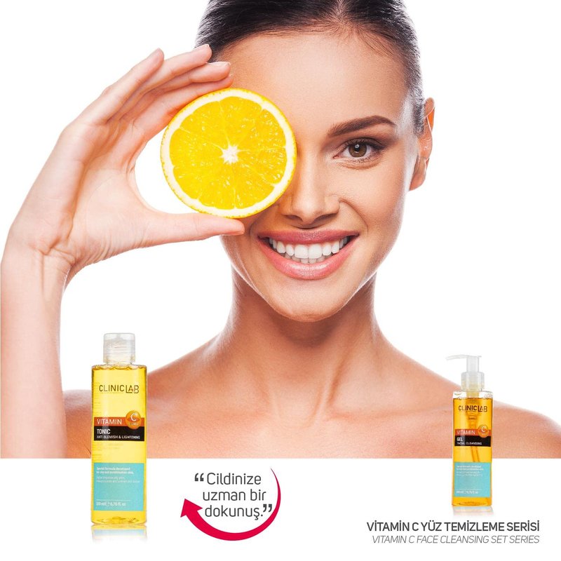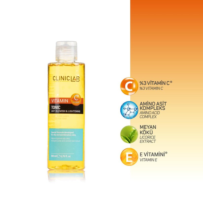 ClinicLab Vitamin C Tonic is a 200ml special formula designed for oily and combination skin. This brightening tonic deeply cleanses the pores, minimizes blackheads and black spots, and prevents the formation of new blemishes. It aims to give the skin a lively and bright appearance. To use, apply a sufficient amount of the tonic to your skin with cotton. Rinse with clean water after 4-5 minutes. This product is particularly effective for those looking to manage oily skin and achieve a more even, radiant complexion.