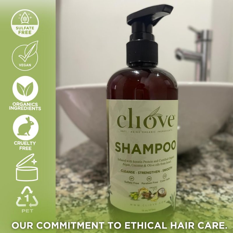 Cliove Shampoo | Hair Moisturizing Keratin Protein Treatment Infused with Argan Oil and Olive Oil | Anti Frizz Shampoo for Curly Wavy, and Straight Hair |16oz