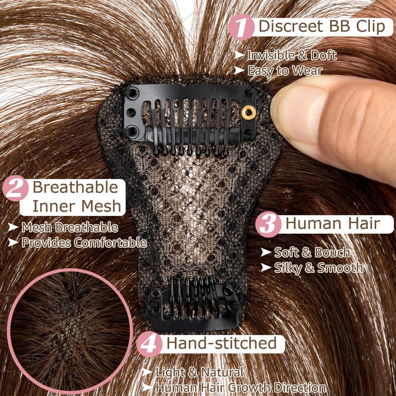 - Easy to Wear : Clip-in bangs design, super intuitive and simple, change a new hairstyle in 30 seconds. Clips are secure and undetectable even on your thin front hairline.