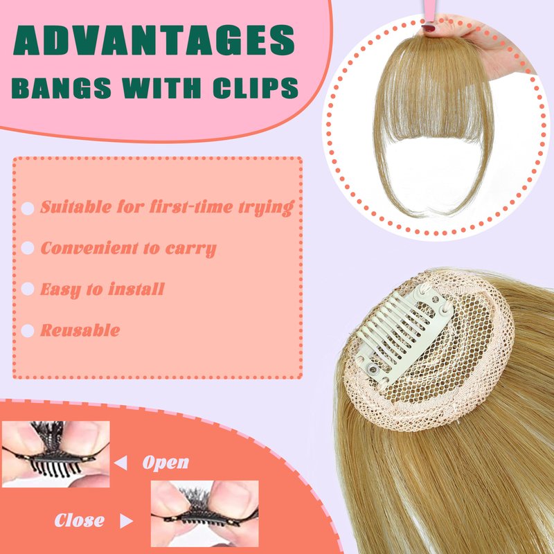 Clip in Bangs 100% Real Human Hair Bangs Hair Clip Bright Ash Blonde Wispy Fake Bangs,Clip on Bangs for Women Faux Bangs Clip in Hair extensions/Pieces with Hair Roller