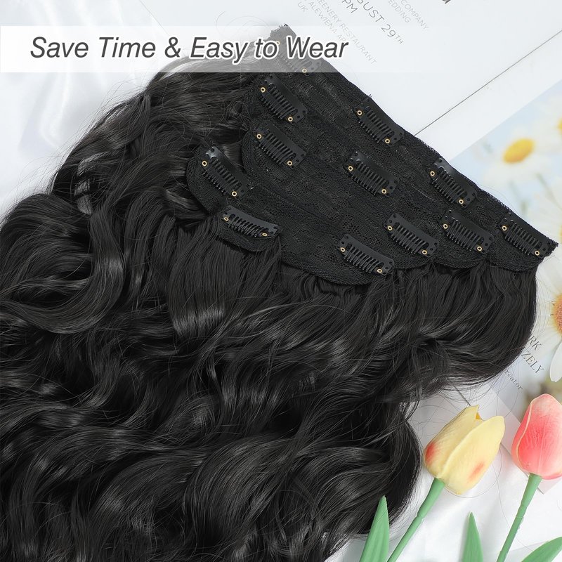 - 【6-piece clip-in hair extensions advantages】 Compared with traditional hair extensions, no tape is required, no glue is required, our hair extensions are only fixed with BB clips. It only takes a few minutes to complete. No pressure, no damage to the scalp. This wavy hair extension for long hair is safer and more comfortable. Cut, perm and wash it yourself, no need to rush to the salon for a party or be upset the next morning after oversleeping; just spend 5 minutes wearing these hair extensions to create a glamorous and elegant look.