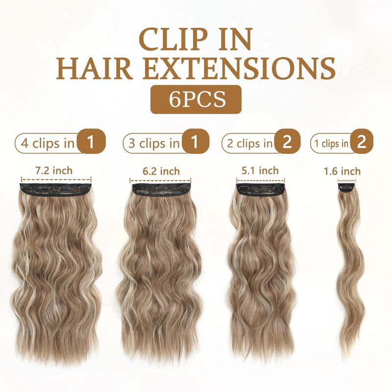 - Easy to Apply and Effective New Look: This wavy curly clip in hair extensions is friendly for the users, no need go to expensive hair salon, no need external help, easy to apply on your hair by snapping the clips in, you can decide how many pieces to apply among 6 pcs according to your hair volume, trim or reshape according to your hair style and length.