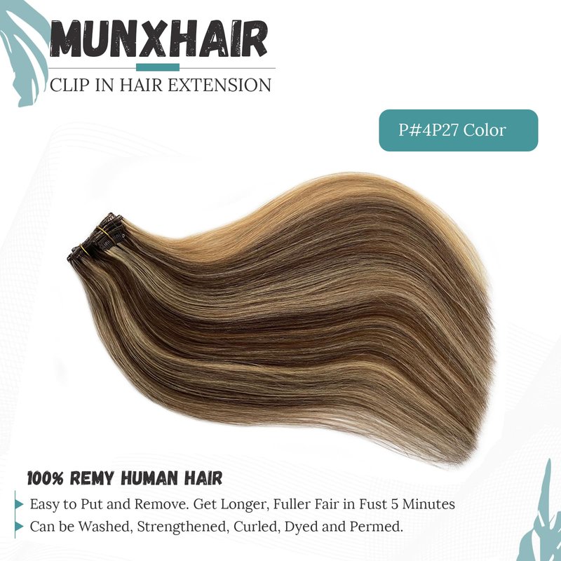 - 【Hair Weft】-- Munx hair extensions clip in are well crafted double wefts, difficult to shedding, which is the most convenient and quick way to add your hair volume and hair length. Natural hair extensions sewn with quality clips, secure and comfortable to wear.