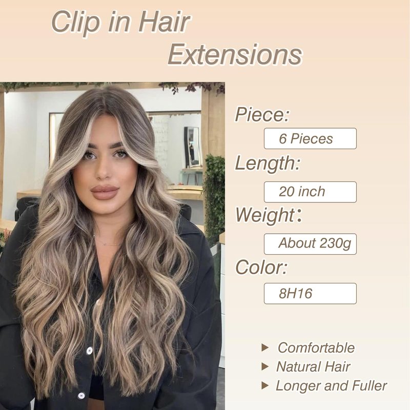 - Premium Hair Quality: Our clip in hair extensions are crafted from high-quality, either synthetic or natural, hair strands. This ensures a luxurious, natural feel and appearance, seamlessly blending with your own hair for a flawless look.
